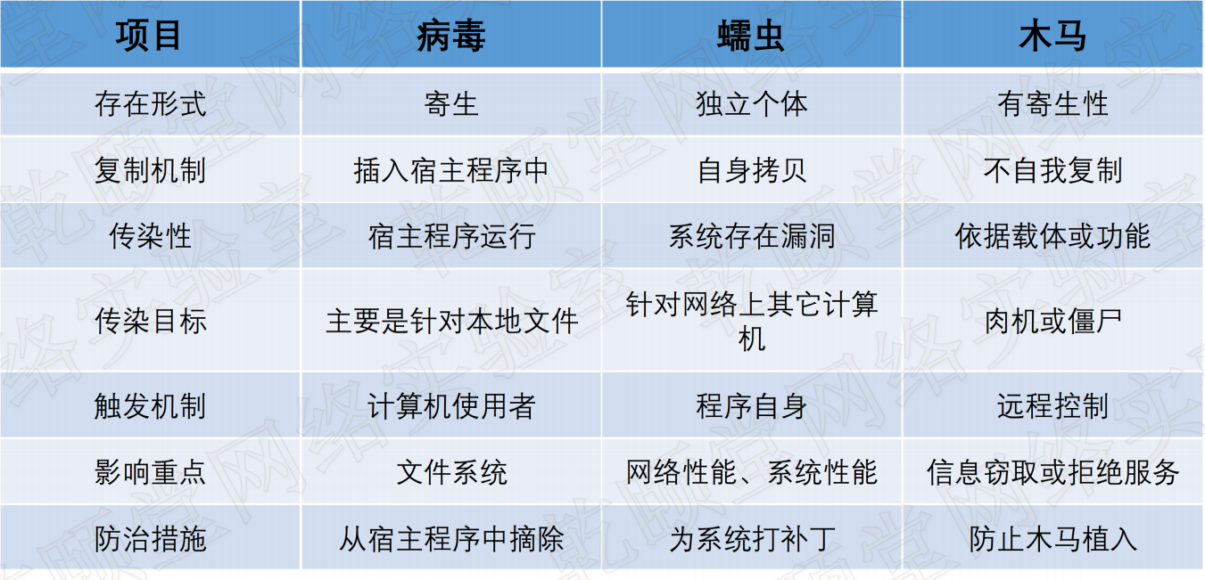 病毒蠕虫木马对比