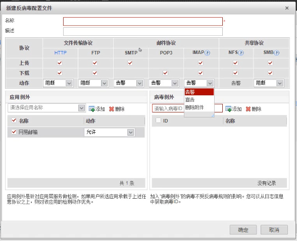 如果用户认为某个病毒为误报,可以根据病毒ID配置病毒例外。
