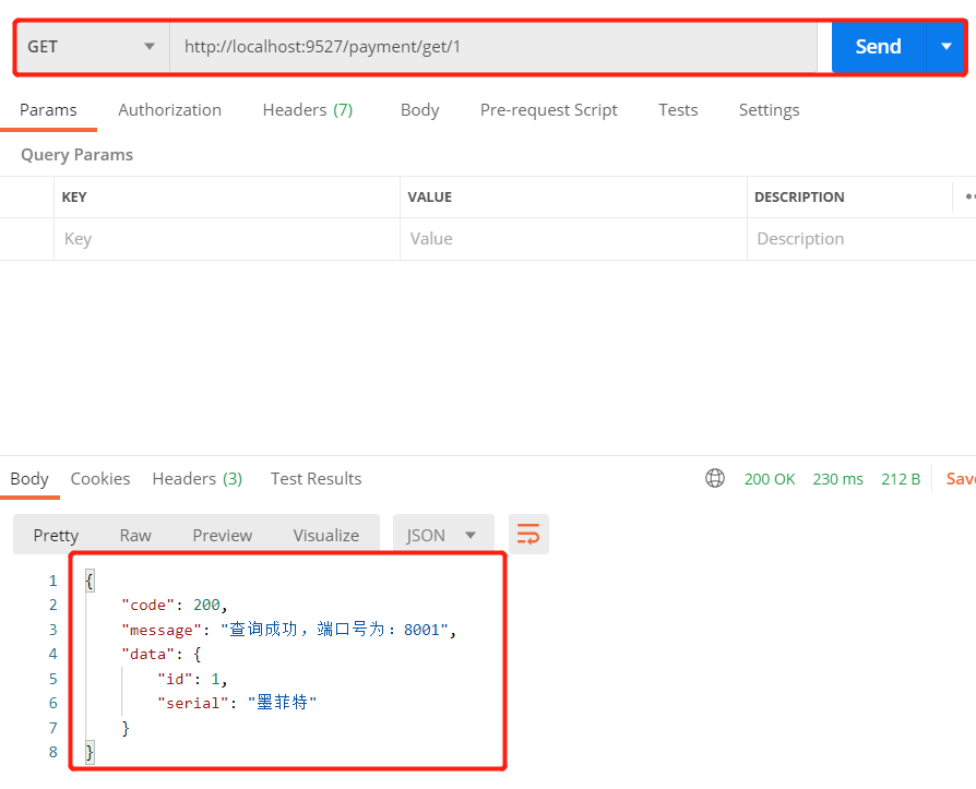 访问网关地址:http://localhost:9527/payment/get/1