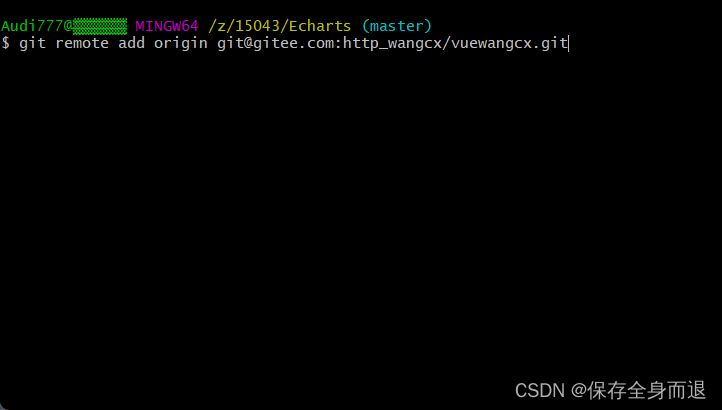 3. 使用 git remote add origin 远程库地址将项目关联至你之前准备好的远程库地址