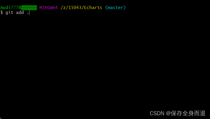 5.操作命令:git add . 将文件add进提交队列,和svn的add文件类似的功能,‘ . ’ 代表的是所有文件(或者使用命令 git add + 文件名 // 将文件保存到缓存区)