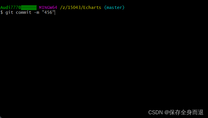 6.操作命令: git commit -m '新添加的文件内容描述' 将add的内容进行commit操作。