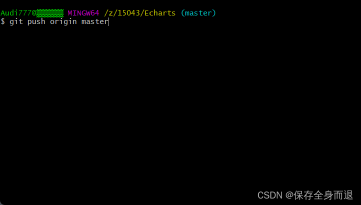7.操作命令:git push origin master 将本地仓库推送到远程仓库