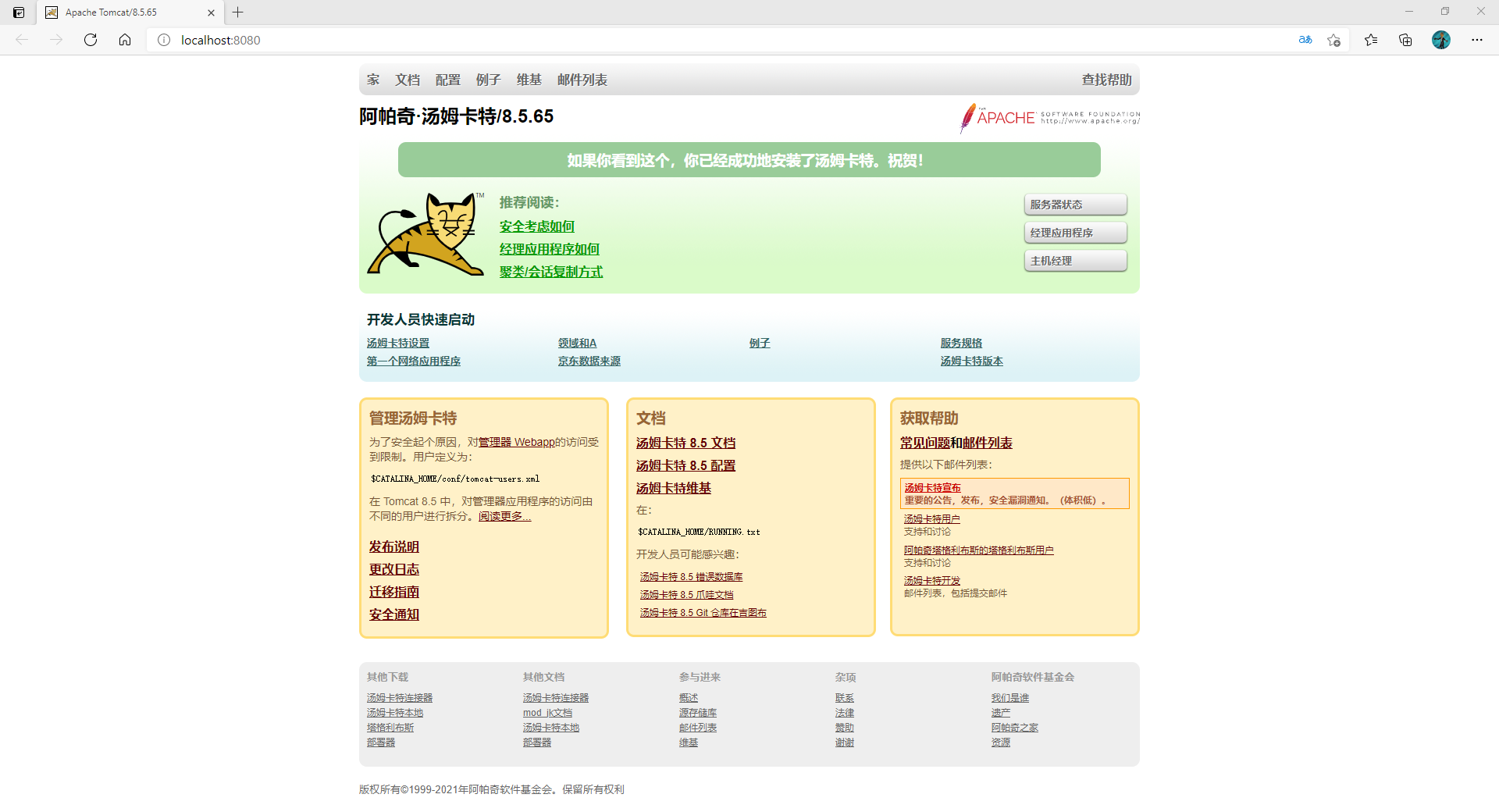 关于tomcat是java的web应用创建平台刚开始进入的界面是这样的