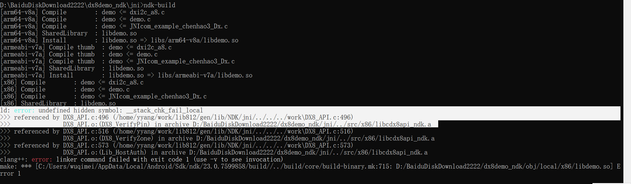 java.lang.UnsatisfiedLinkError: dlopen failed: cannot locate symbol "__read_chk" referenced by "libdemo.so"...