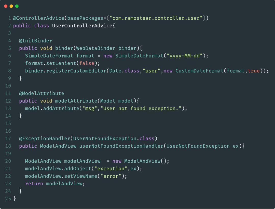 首先,我们需要定义一个被@ControllerAdvice所标注的类,在该类中,定义一个用于处理具体异常的方法,并使用@ExceptionHandler注解进行标记。