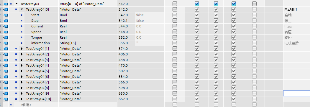 5、在TIA Portal中允许使用用户自定义数据类型作为Array的元素。