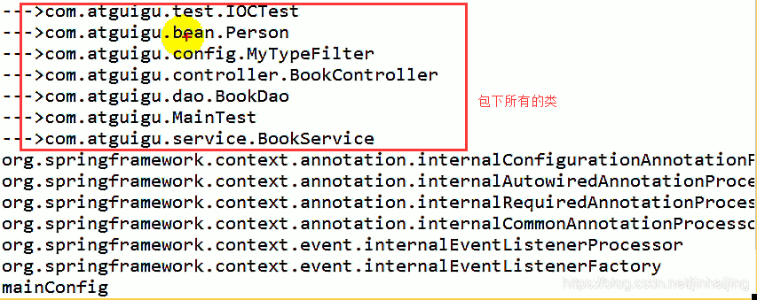 @Filter(type=FilterType.ASSIGNABLE_TYPE,classes{BookService.class})