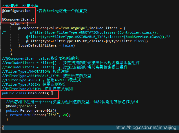 @ComponentScan(value="com.atguigu",includeFilters = {