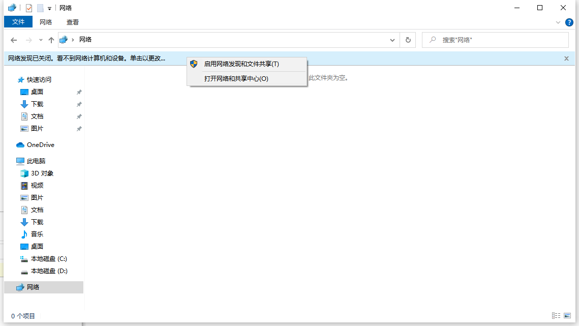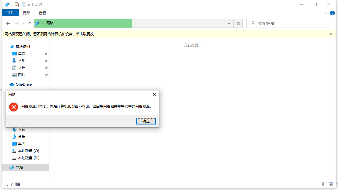1、双击“此电脑”,点击“网络”,如果没有打开网络发现,则会出现如下提示