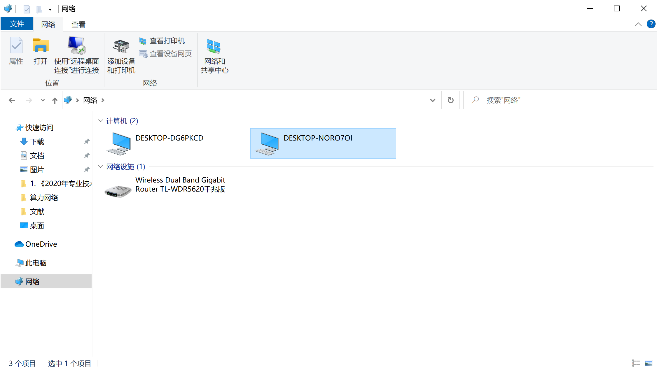 3、共享文件夹的主机(服务机)和客户机都做了上述操作后,客户机中的网络界面如下: