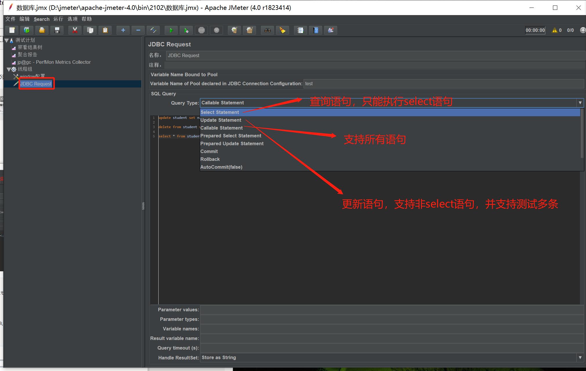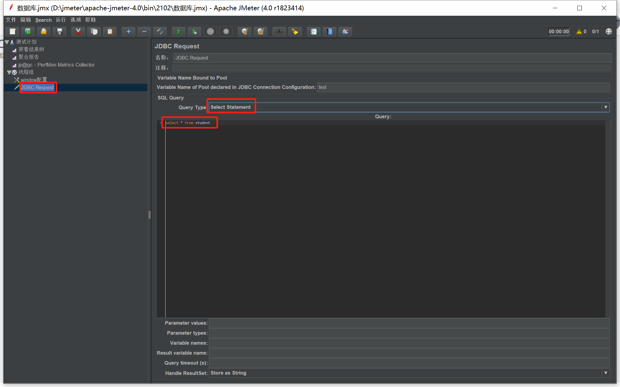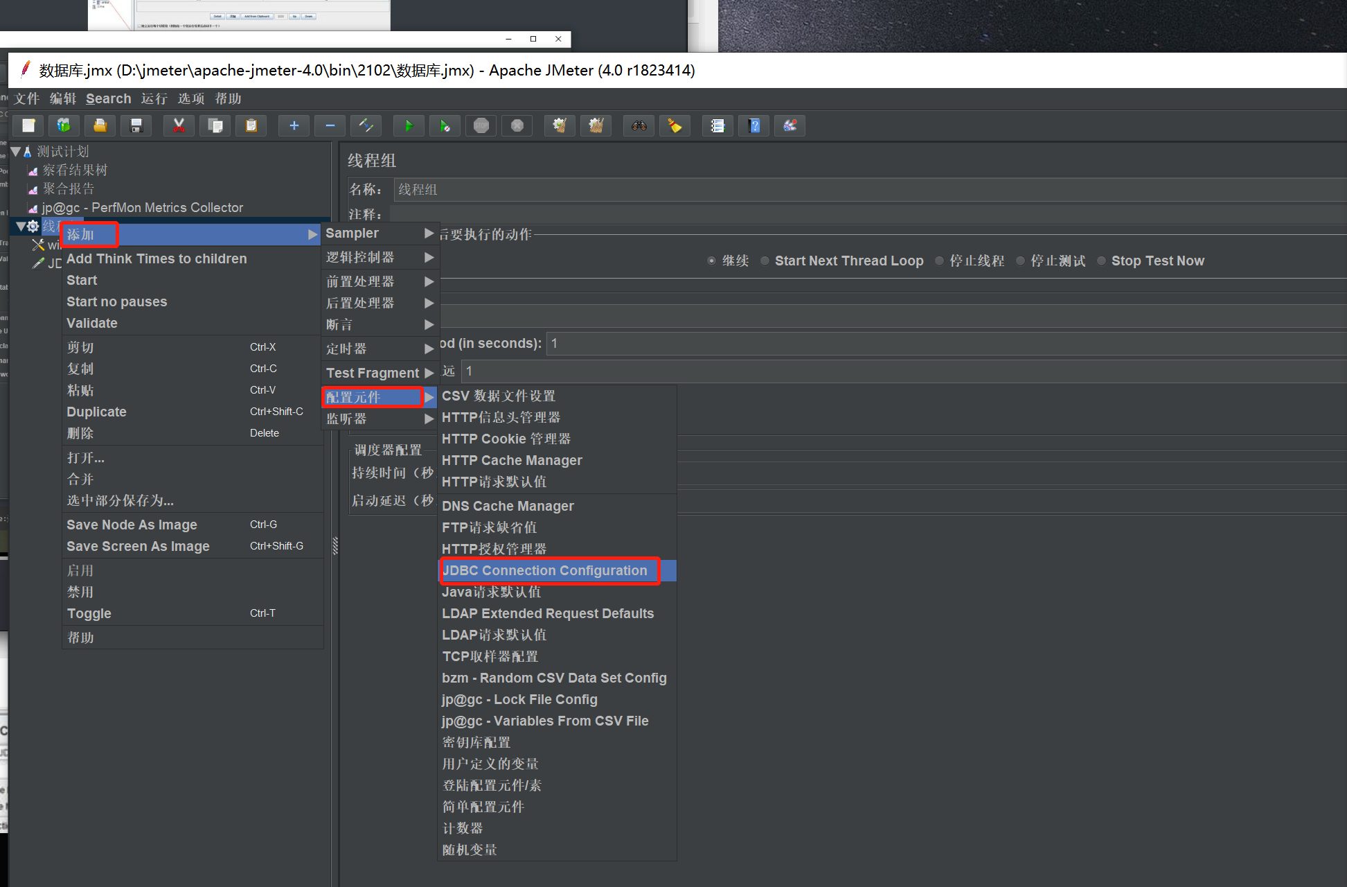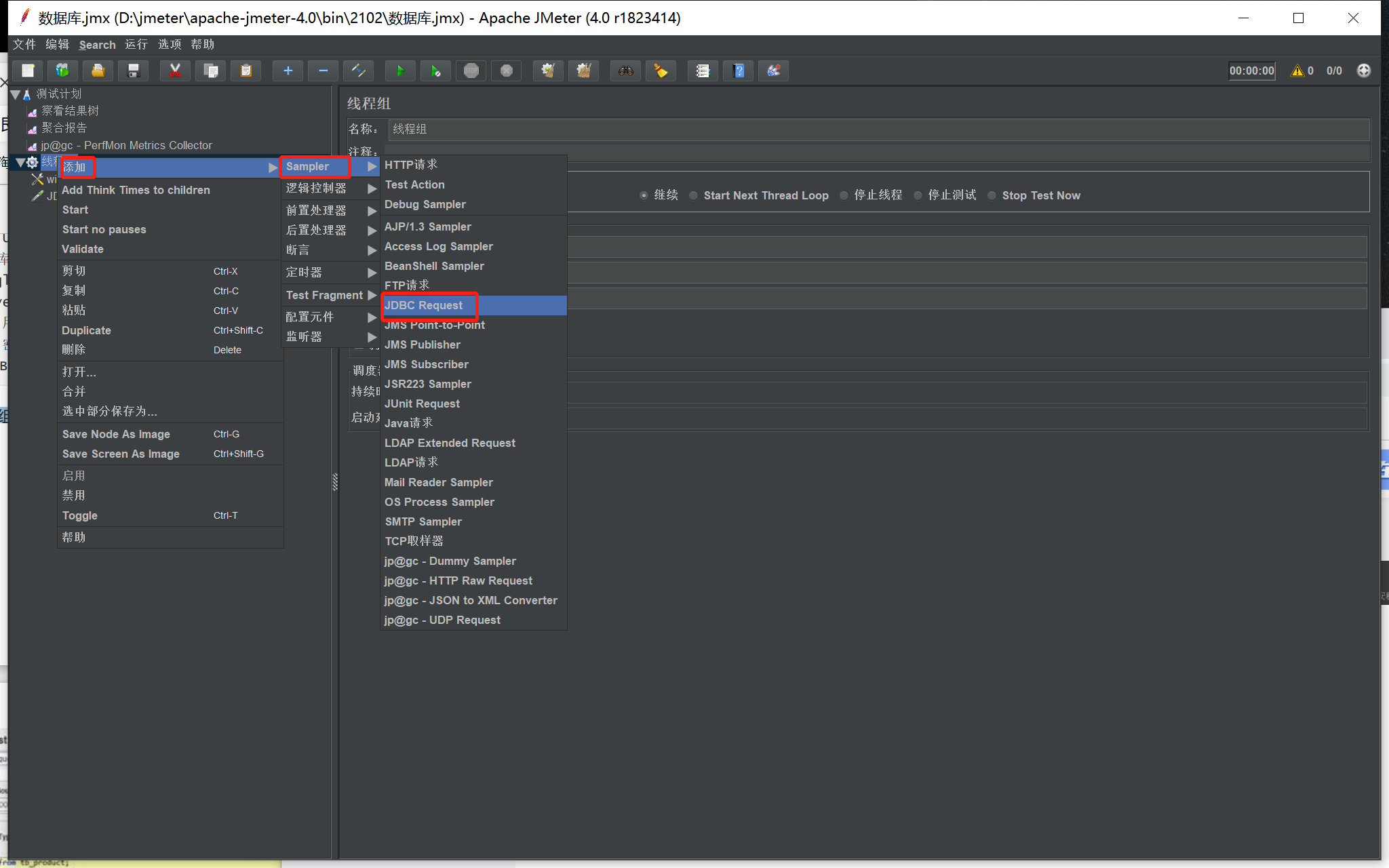 3)右键线程组【添加】-【Sampler】-【JDBC Request】