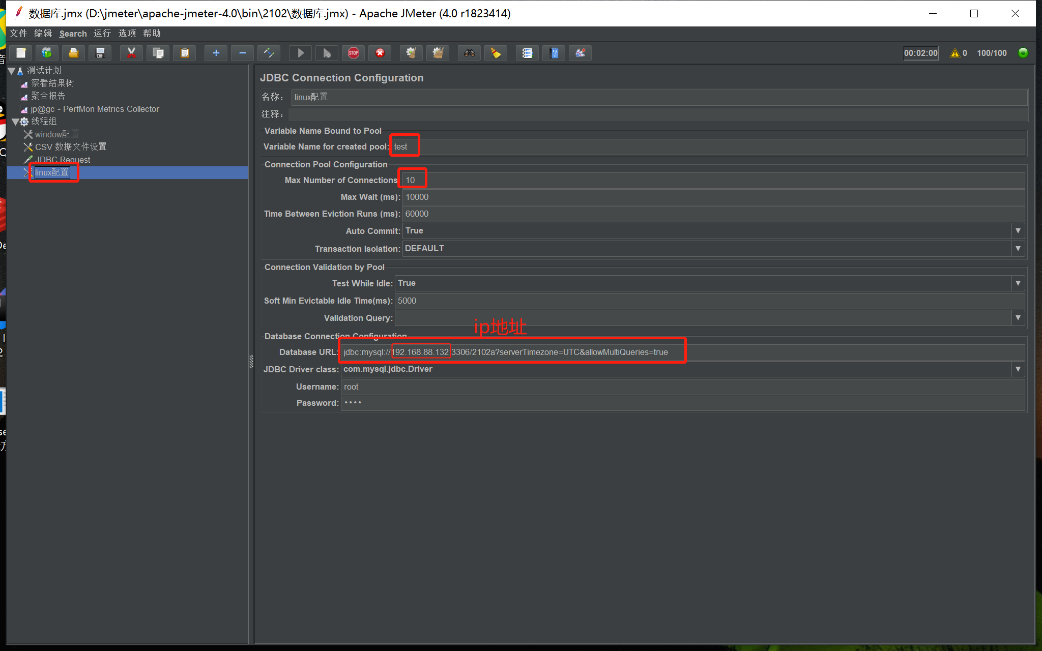 2)添加一个JDBC Connection Configuration,连接池配置文件。右键线程组【添加】--【配置元件】- -【JDBC Connection Configuration】
