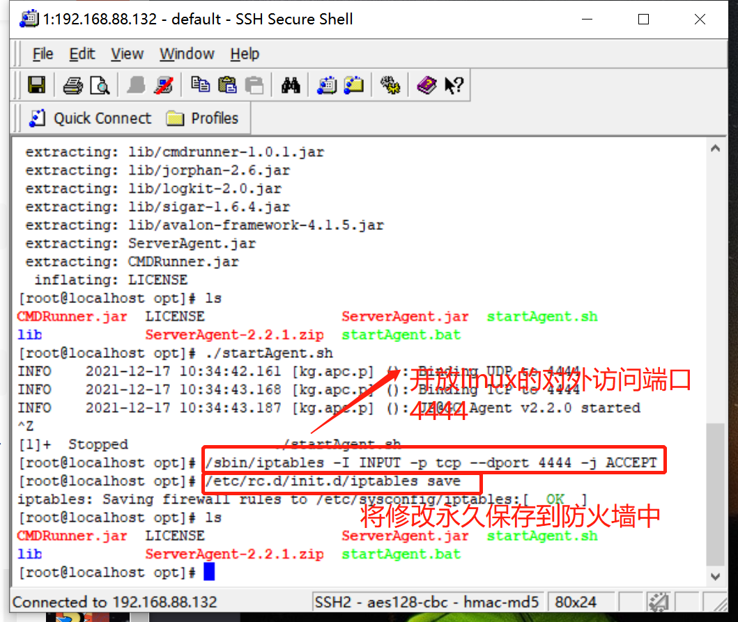 /sbin/iptables -I INPUT -p tcp --dport 4444 -j ACCEPT将修改永久保存到防火墙中