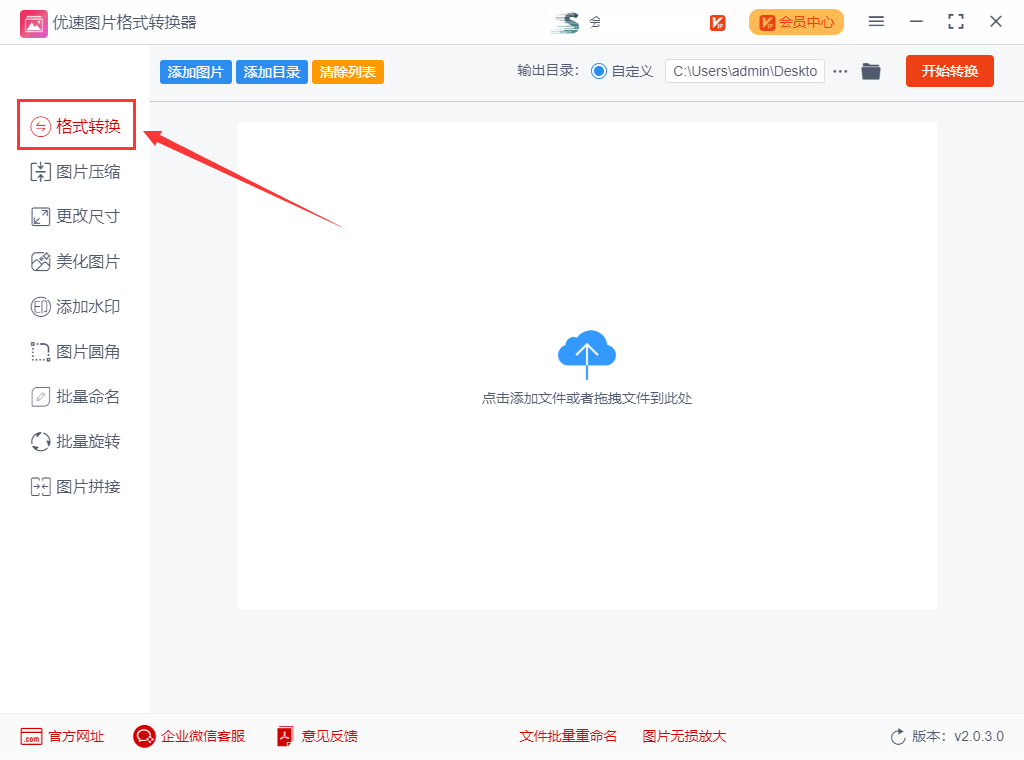 步骤一:电脑上下载安装我们要使用的软件--【优速图片格式转换器】,打开软件选择首页左列表中的【格式转换】功能,这个功能就可以相互转换各种格式的图片,方便用户使用。