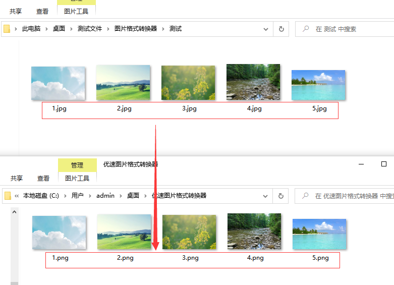 步骤四:通过我们对转换后png图片的查看,软件成功的把原来jpg格式图片转成了png格式,转换成功。