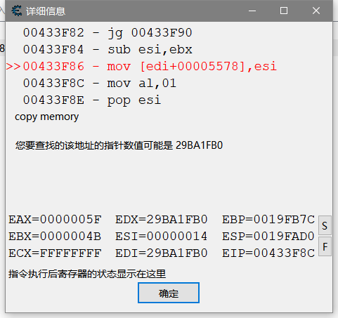 先将esi入栈 ,将当前阳光值赋给esi,将edi的值赋给edx,调用33E90段的程序,返回后继续执行:eax=eax+esi,比较ebx和eax具体的方法为ebx-eax然后根据结果就修改IF和CF标志位,jg条件转移当CF=1时,所以这段的意思就是如果ebx>eax就执行33F90程序,如果ebx<eax就继续往下执行: