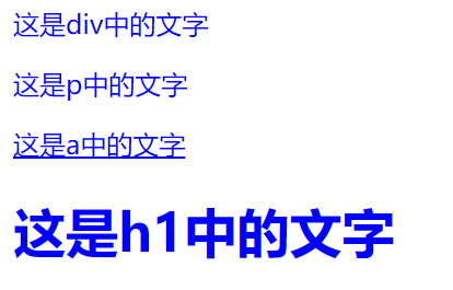 * =>表示选中页面中所有元素 ( 如下,页面所有标签中的文字都是蓝色)