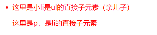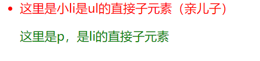 > =>选中直接子元素 (如下,ul>li设置li的文字颜色,不会改变p标签中的元素)