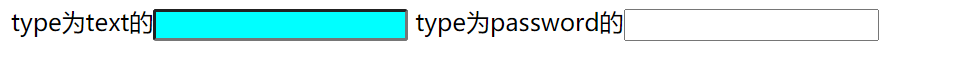 input[type=text] { background-color: aqua; }type为text的<input type="text"> type为password的<input type="password">