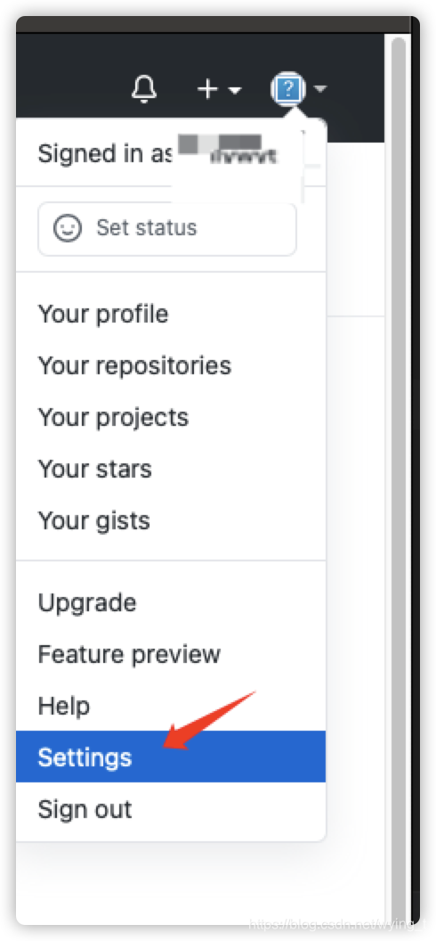 步骤1:登陆自己的GitHub,然后点击头像,点击settins