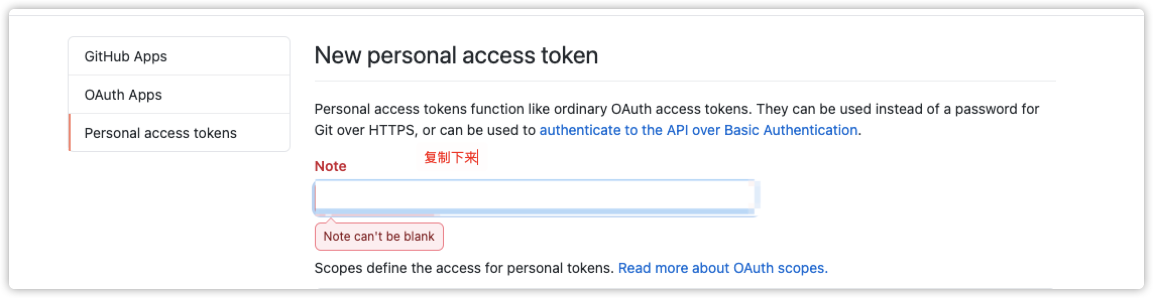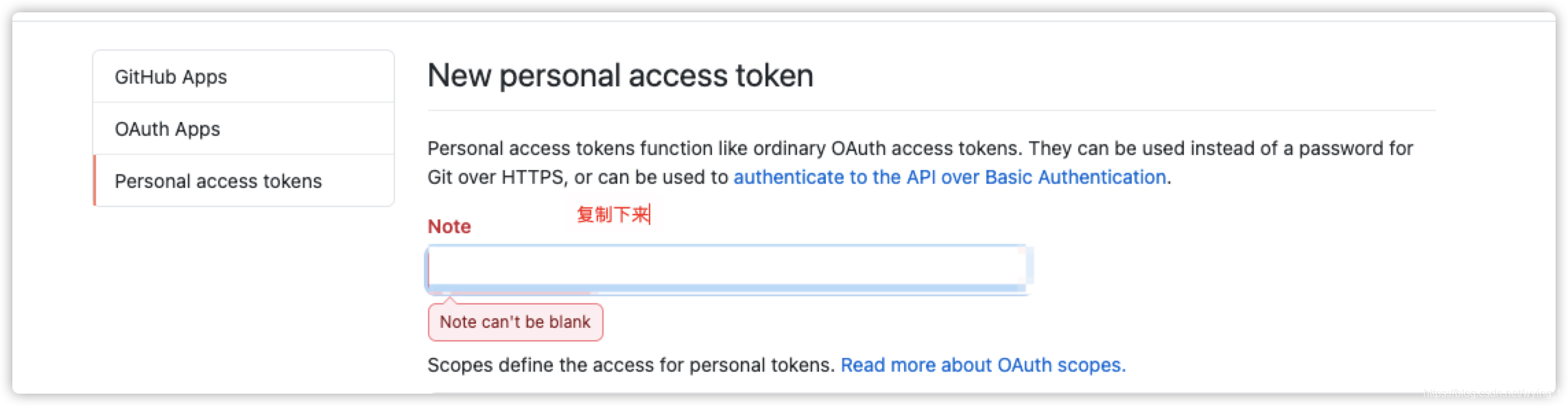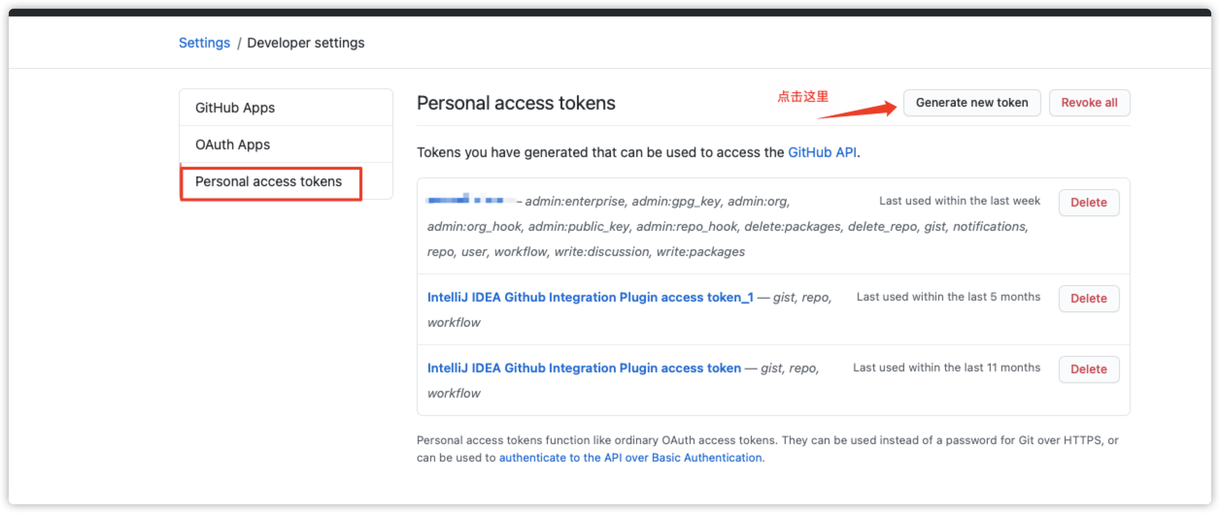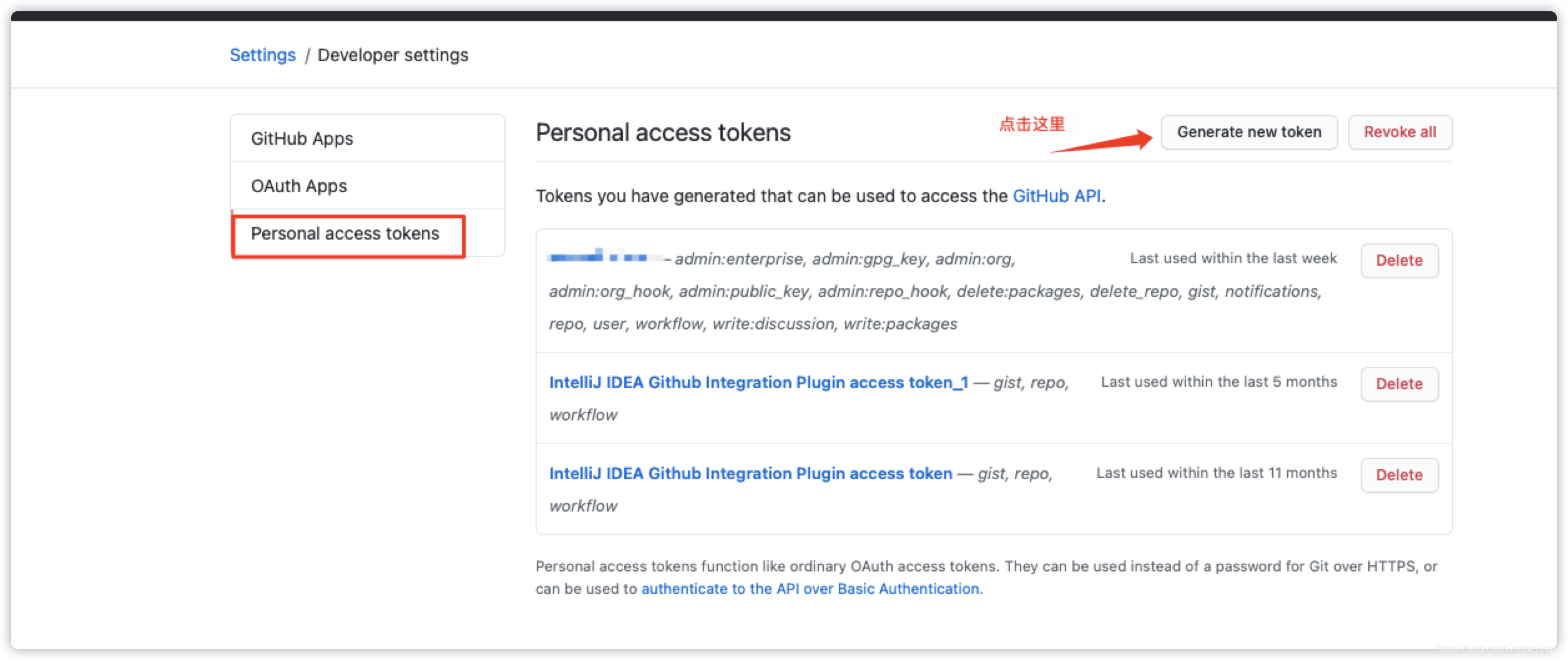 步骤三:点击Personal access tokens 中的Generate new token