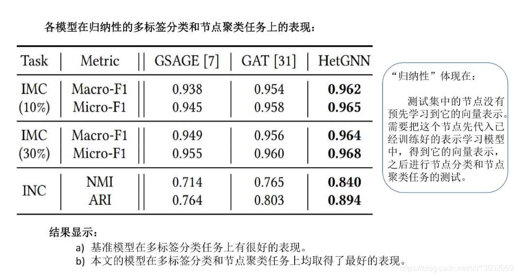 归纳性的多标签分类和节点聚类实验: