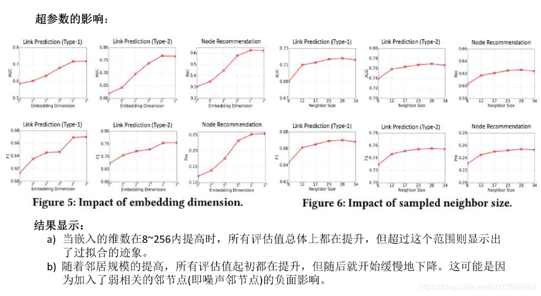 - 本文模型的各个超参数,例如嵌入的维度或异构邻居的采样数量对模型的性能有什么影响?