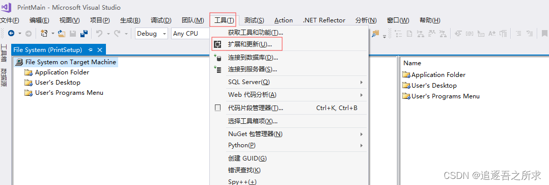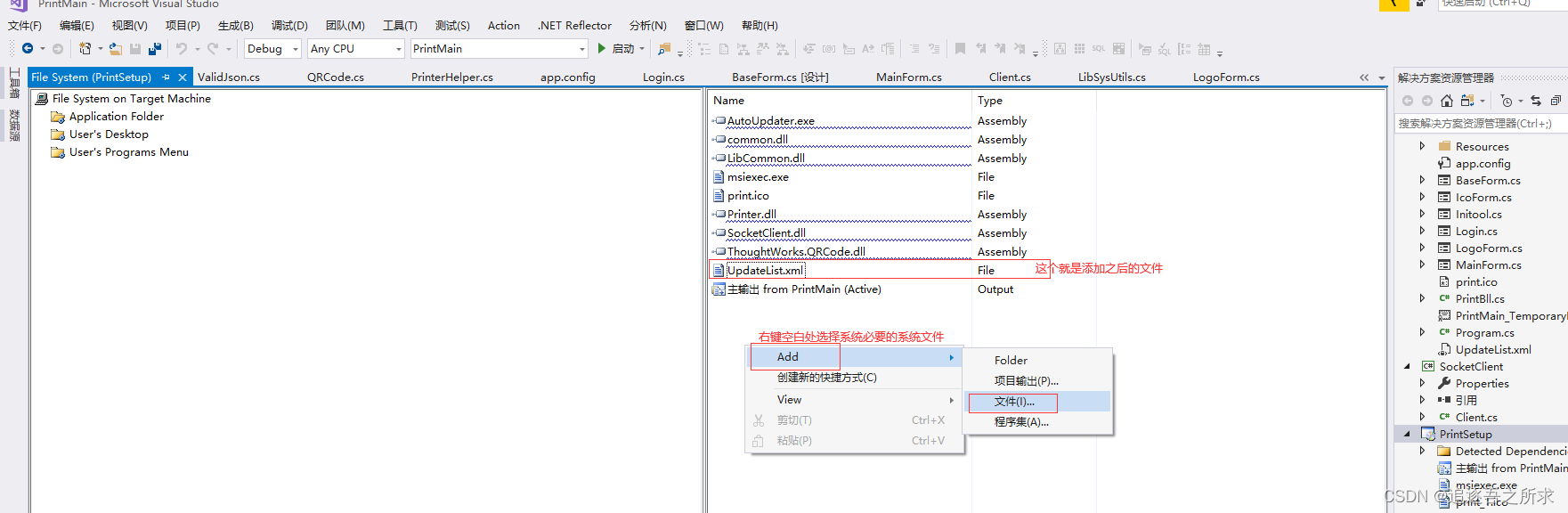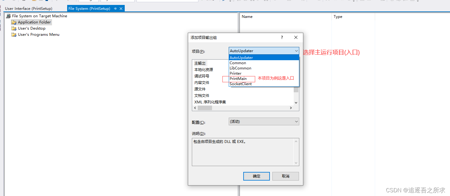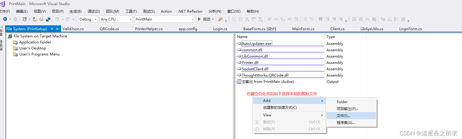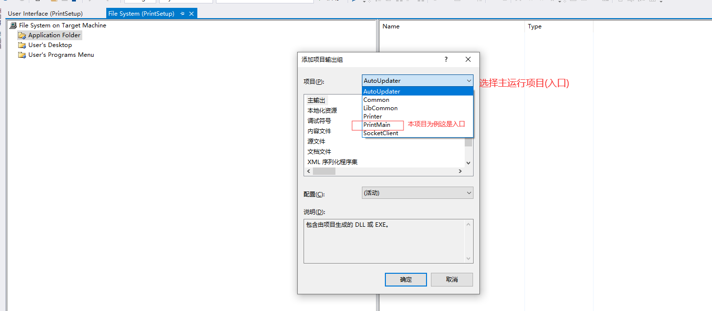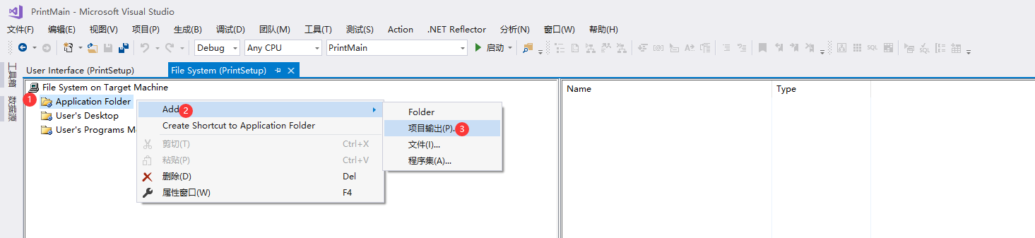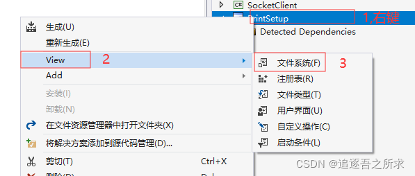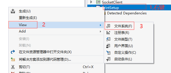 4,在打包项目的文件系统添加启动入口(创建完项目会自动打开如下图(2)界面,如果不小心关掉了可以右键项目>view>文件系统参照图(1))