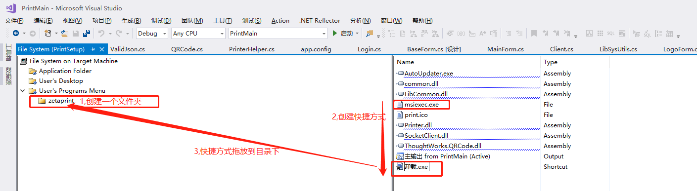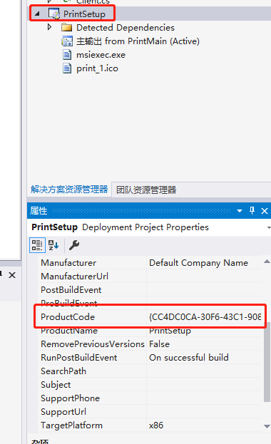 设置卸载快捷方式的属性让它知道要卸载的是哪个程序(点击打包程序项目找到ProductCode把它的值复制下来放到卸载的快捷方式属性Arguments里,在前面加/x 有一个空格)