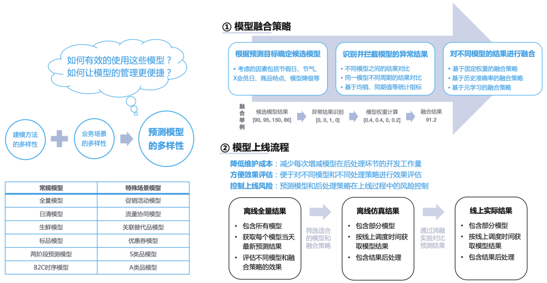 预测结果融合:包括模型预测结果的异常值识别与拦截;多个模型的结果融合。