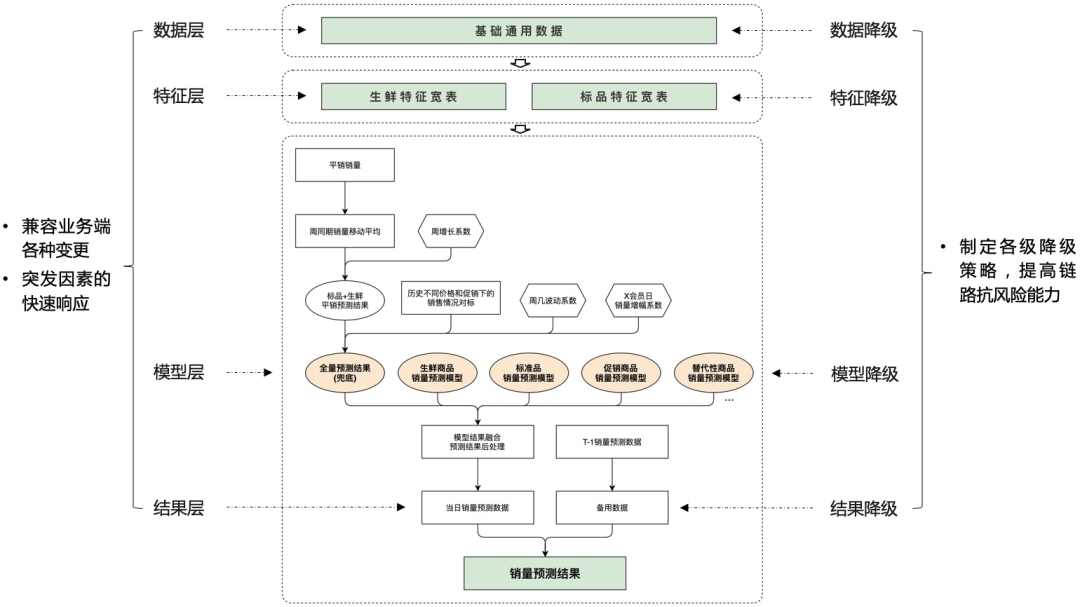 盒马销量预测目前已服务于全国百家级店仓,每日百万量级SKU的补货作业,为了保障日常补货的稳定性,应对门店的快速扩张以及新业态的产生,销量预测整体链路沉淀了相应的降级策略和响应方案: