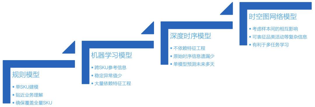 盒马预测算法的迭代路径如下,本节主要对销量预测的常见方法进行介绍。