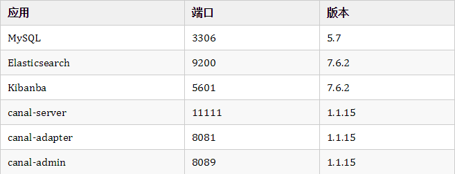 MySQL、Elasticsearch和canal会有兼容性问题,所以我们先对其使用版本做个约定。