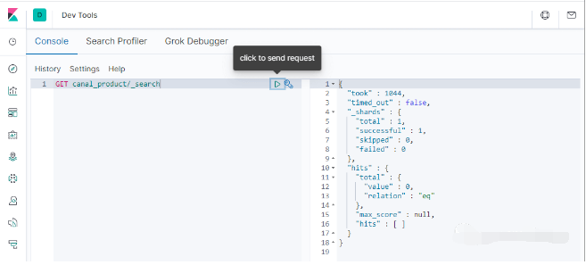 Elasticsearch中搜索下,发现数据已经删除了,至此MySQL同步到Elasticsearch的功能完成了!