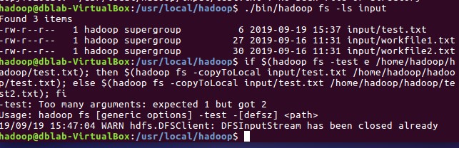 利用Hadoop提供的Shell命令完成相同任务: