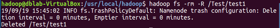 10.删除HDFS中指定的目录,由用户指定目录中如果存在文件时是否删除目录;
