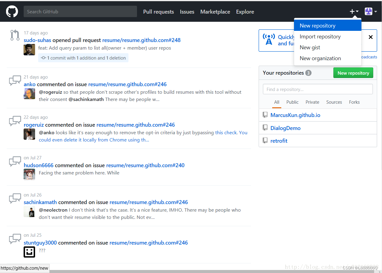 点击右上角“New repository”创建新的仓库