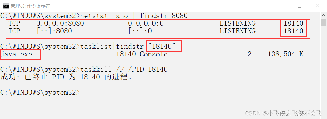 taskkill /F /PID 18140你每次启动stratup.bat时,“18140”是不一样的,你可以通过查看server.xml查看自己的端口号,然后看查看该端口号的