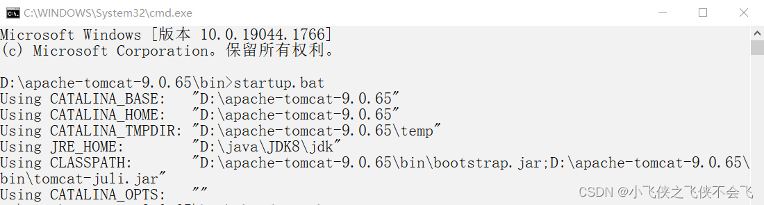 进入Tomcat/bin目录下的cmd运行startup.bat