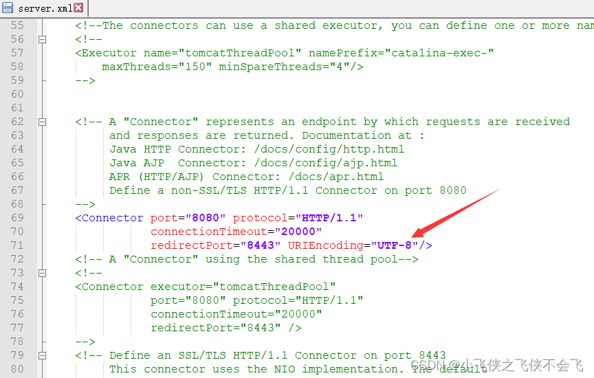 修改tomcat文件夹里的conf\server.xml