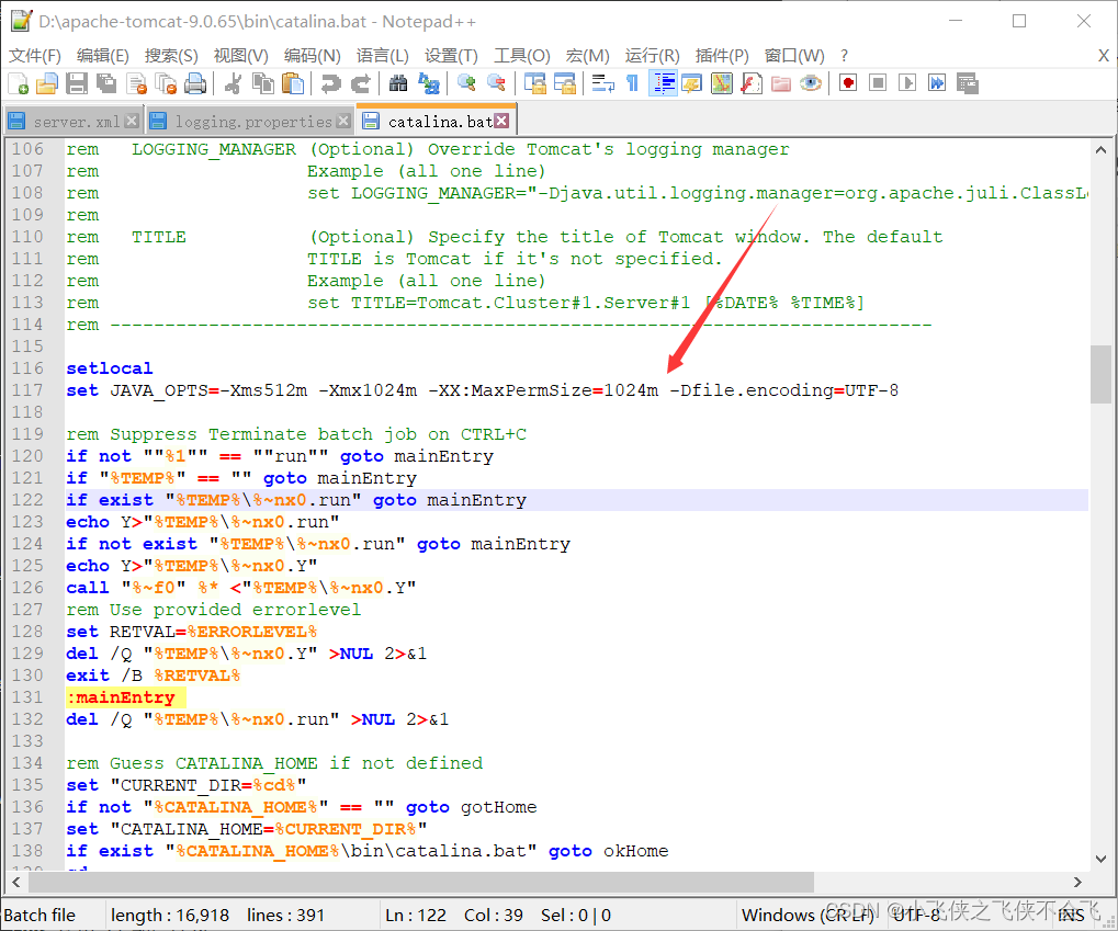 3.修改bin/catalina.bat