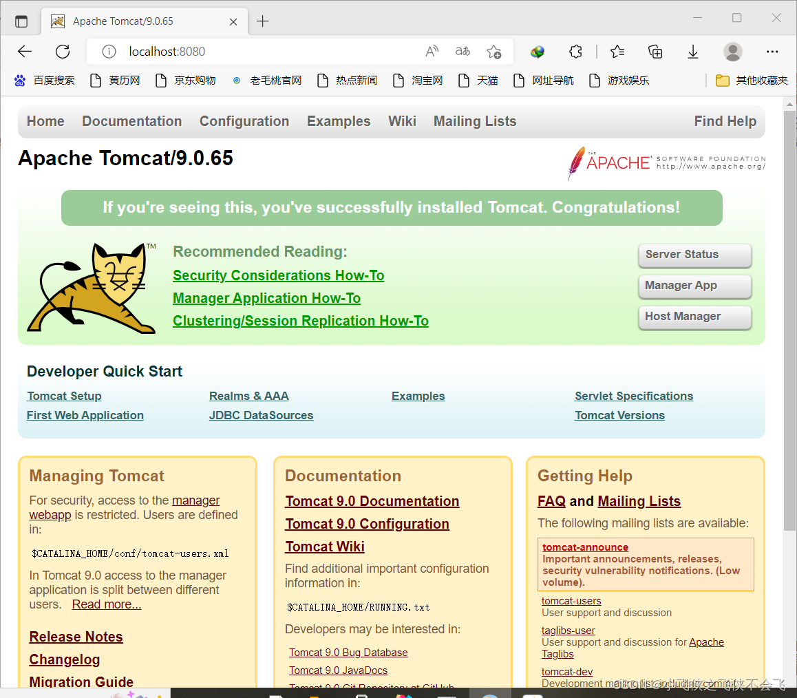可以运行成功 ,记得,双击stratup.bat之后不要关闭,关闭等于你停止运行Tomcat了。
