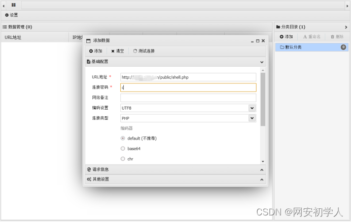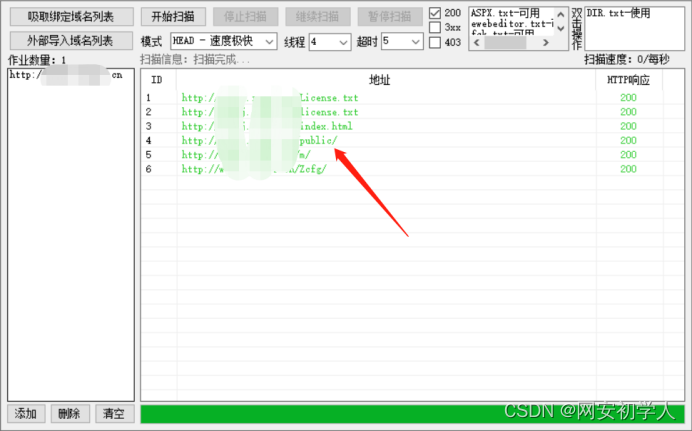 使用后台目录扫描工具对网站目录进行扫描,可以看到存在public目录。双击进入网页