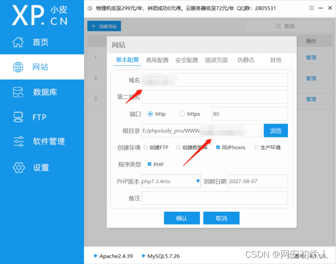 在小皮面板刚刚创建的网站名,点击管理>>打开网站