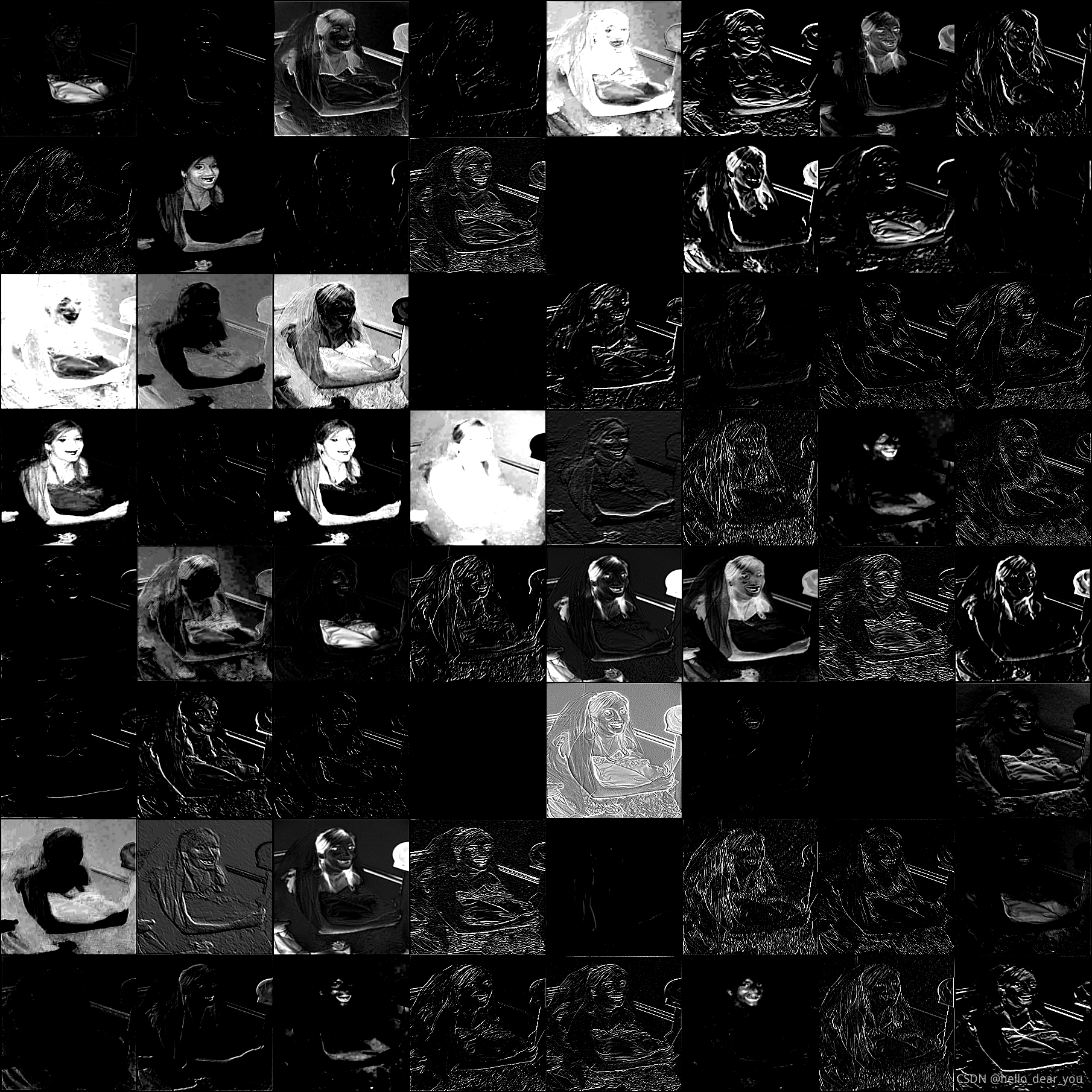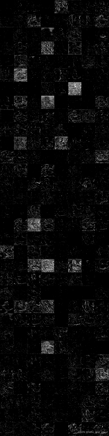 通过上述的分析过程,可以得到VGG网络中不同卷积层输出的特征图,同时可以修改module的匹配原则得到其他类型层的输出,也即在合适的module后面添加本文的hook_func函数就可以对其特征图进行可视化。