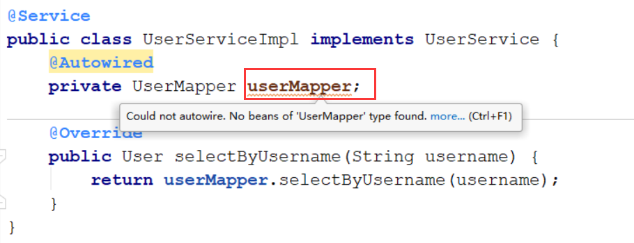 @Mapper 注解是 Mybatis 提供的,而 @Autowried 注解是 Spring 提供的,IDEA能理解 Spring 的上下文,但是不能理解Mybatis。