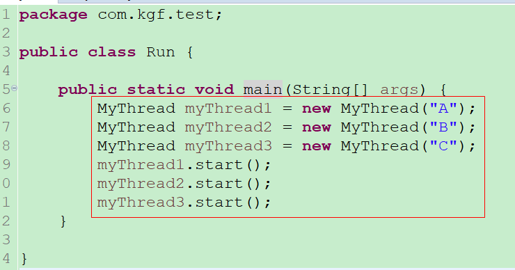 b:我们在测试类中只new了一个MyThread线程实例,然后基于这个线程实例我们创建