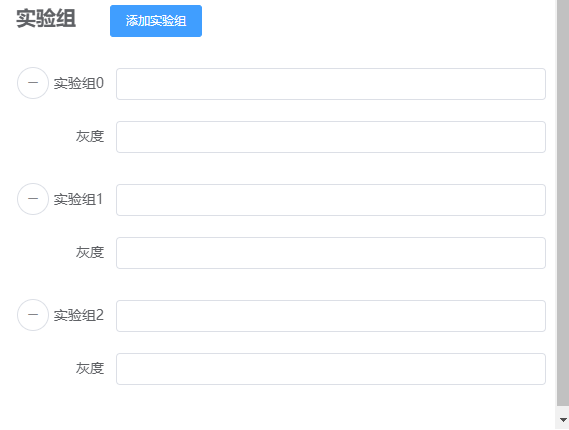 点击添加实验组 ,添加一组输入框,点击减号删除一组输入框