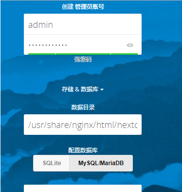 设置帐号密码,以及数据库的连接信息。如果不报错,即可安装完成,进入。